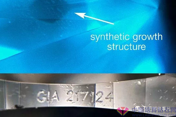 历经进一步的检测认证,GIA工作员评定它是一枚根据髙压高溫(HPHT)方法制做的人工合成人造钻石。人造钻石上的人工合成纹十分显著,并且在检测中发觉归属于IIb型,但原先验证的人造钻石归属于Ia型。